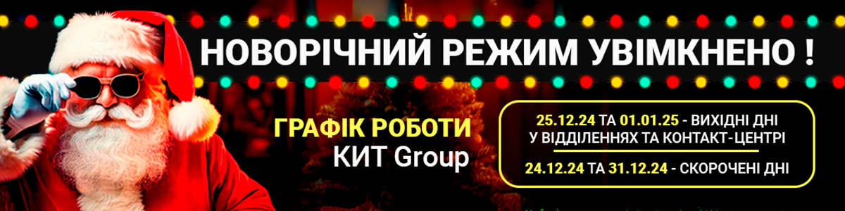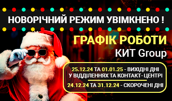 Звертаємо Вашу увагу на зміну графіку роботи обмінних пунктів і контакт-центру КИТ Group під час різдвяних та новорічних свят: